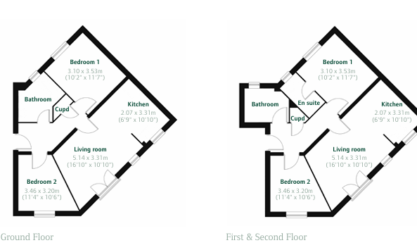 – First and second floor apartments feature en suite to bedroom 1